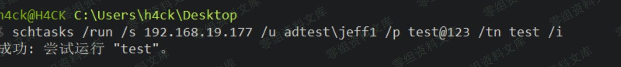 schtasks /run /s 192.168.19.177 /u adtest\jeff1 /p test@123 /tn test /i