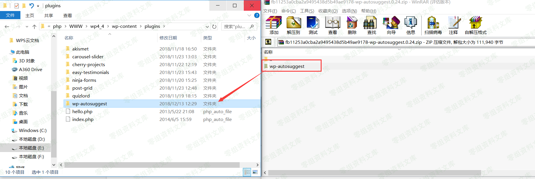 下载完成之后,把wp-autosuggest目录直接拖到Wordpress目录的\wp-content\plugins\下。