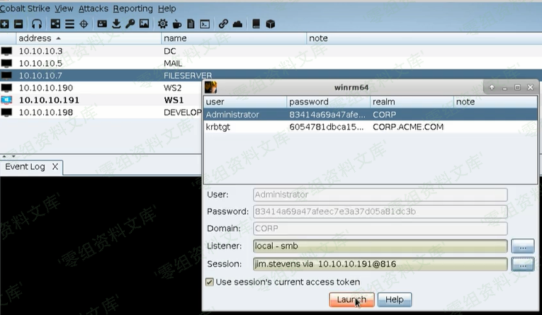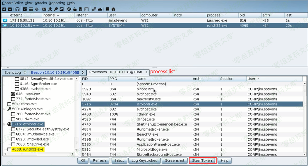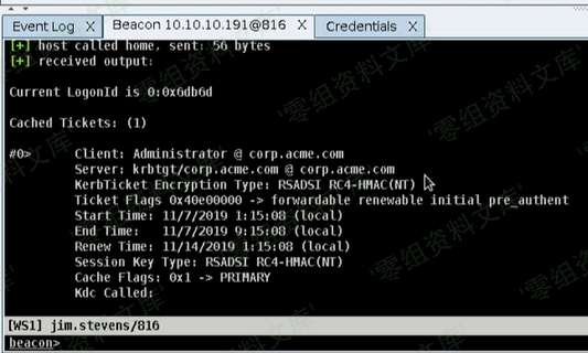 然后Beacon就会执行steal_token 3716,接着我们就有了这个jim.stevens的权限了