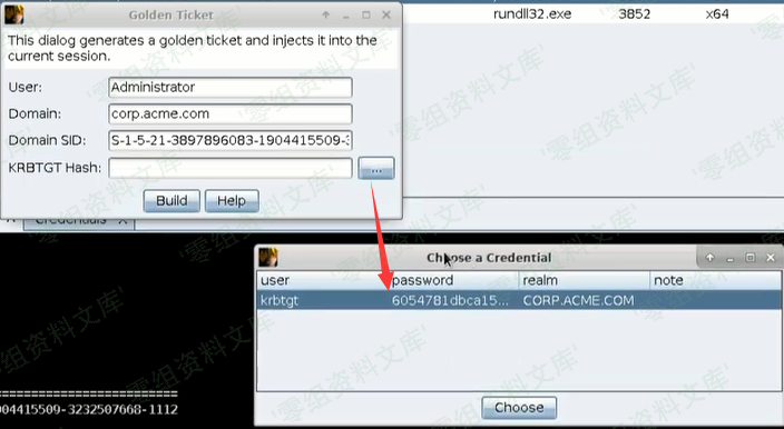 • 域控上的krbtgt用户的NTLM hash:用dcsync导出